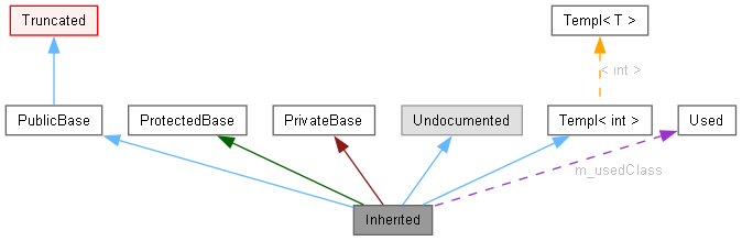红色边框的矩形 表示该结构体或类的关系没有被完全显示.如果生成的图超出了指定的尺寸范围,有一些关系就会被截断而无法显示.